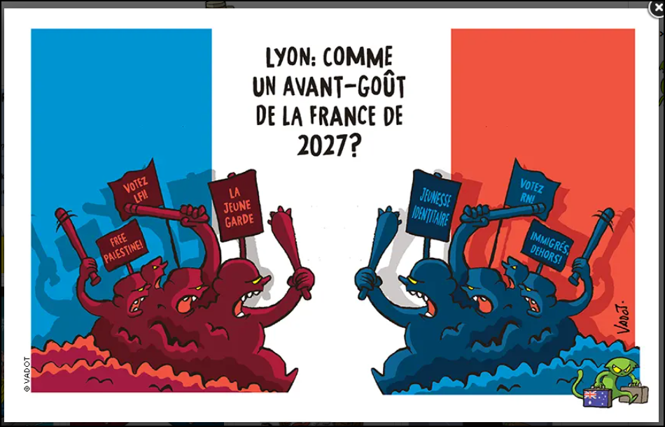 Nous vivons apparemment une recrudescence de la violence politique comme le démontre un autre débat 28' sur ARTE ce mardi. Etaient invités un politologue, un historien et une philosophe. Cette dernière ne limitait pas la violence à l'Extrême Droite, mais aussi à celle de l'Extrême Gauche comme cause de cette violence